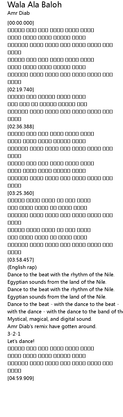 | [04:39.320] | Amr Diab's remix have gotten around. |