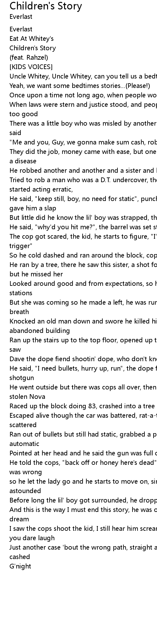 Uncle Whitey, Uncle Whitey, can you tell us a bedtime story? |