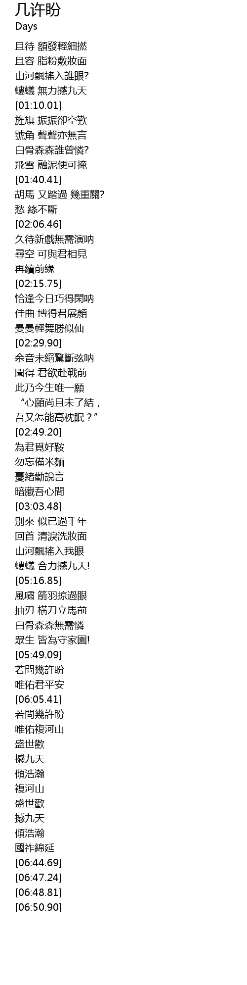 | [01:41.73] | 胡馬 又踏過 幾重關? |