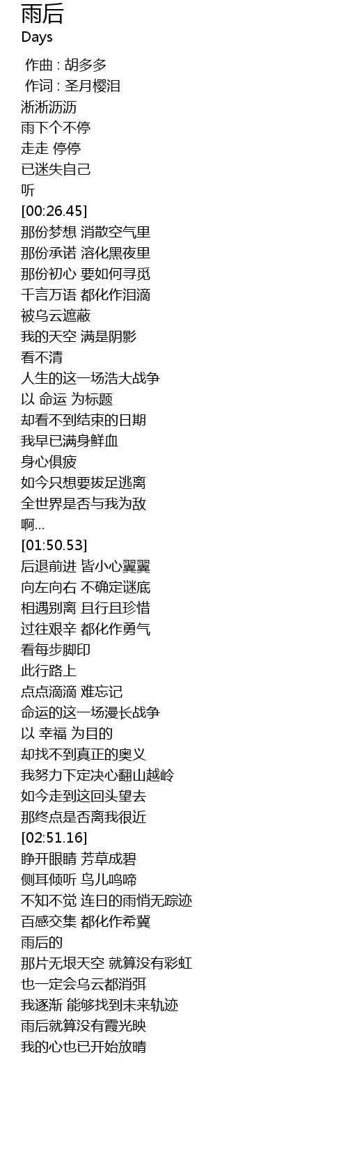 | [03:11.89] | 不知不觉 连日的雨悄无踪迹 |