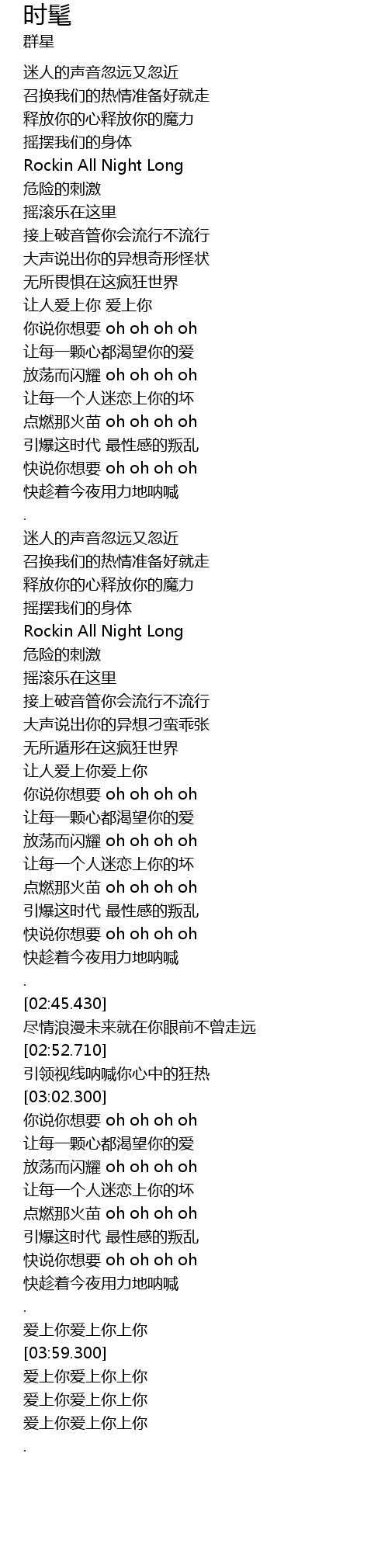 | [03:24.229] | fàng dàng ér shǎn yào oh oh oh oh |