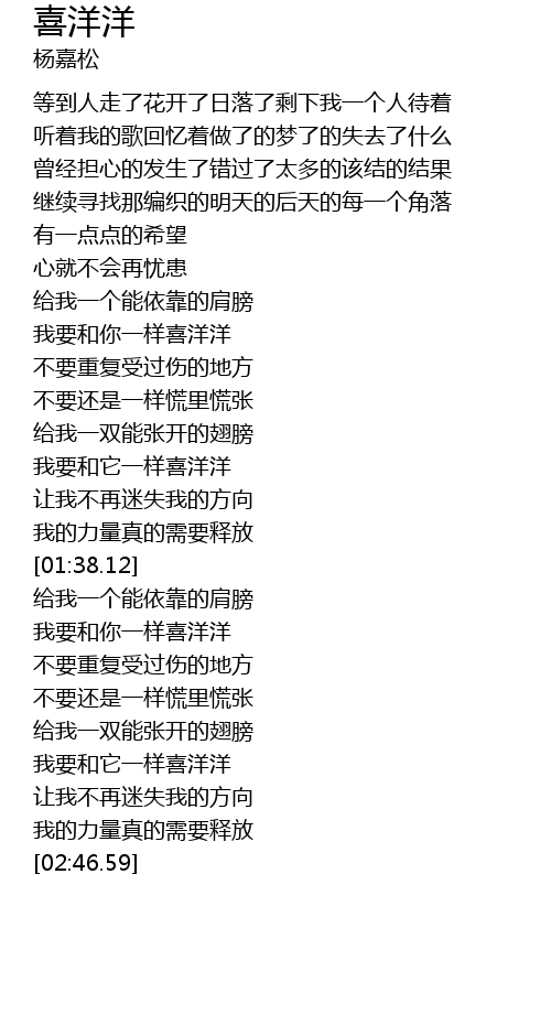| [01:22.43] | 我要和它一样喜洋洋 |