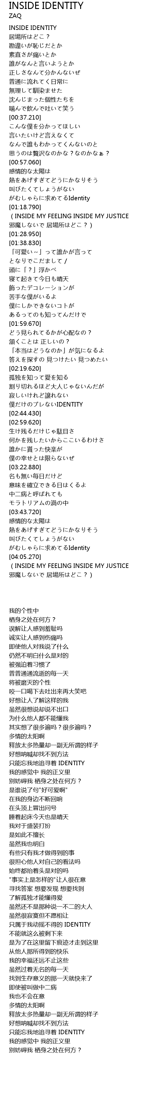 | [03:59.030] | がむしゃらに求めてるIdentity |