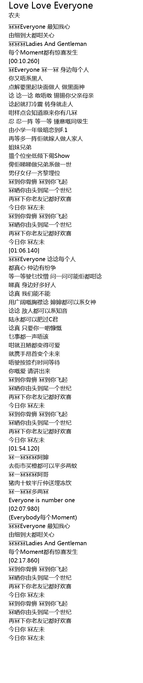 | [01:06.390] | 冧冧Everyone 谂谂每个人 |