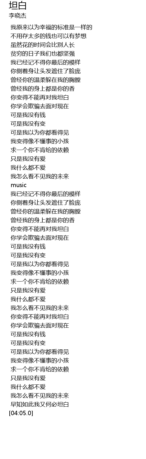 | [03:58.0] | zǎo zhī rú cǐ wǒ yòu hé bì tǎn bái |