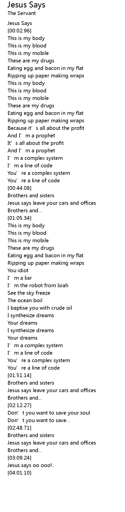 | [00:02.70] | Jesus Says |