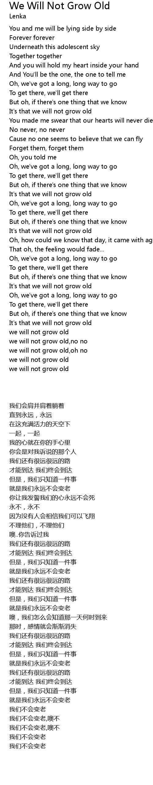 | [02:57.930] | we will not grow old,oh no |