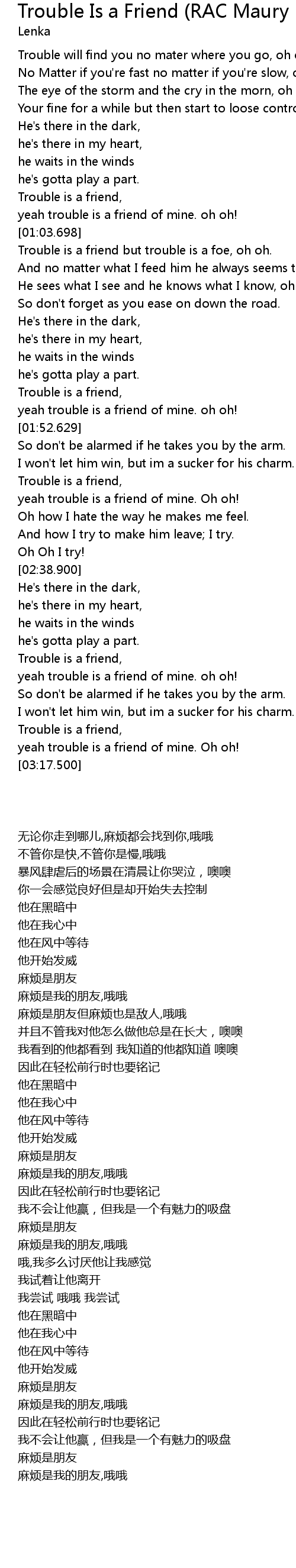| [01:05.538] | Trouble is a friend but trouble is a foe, oh oh. |