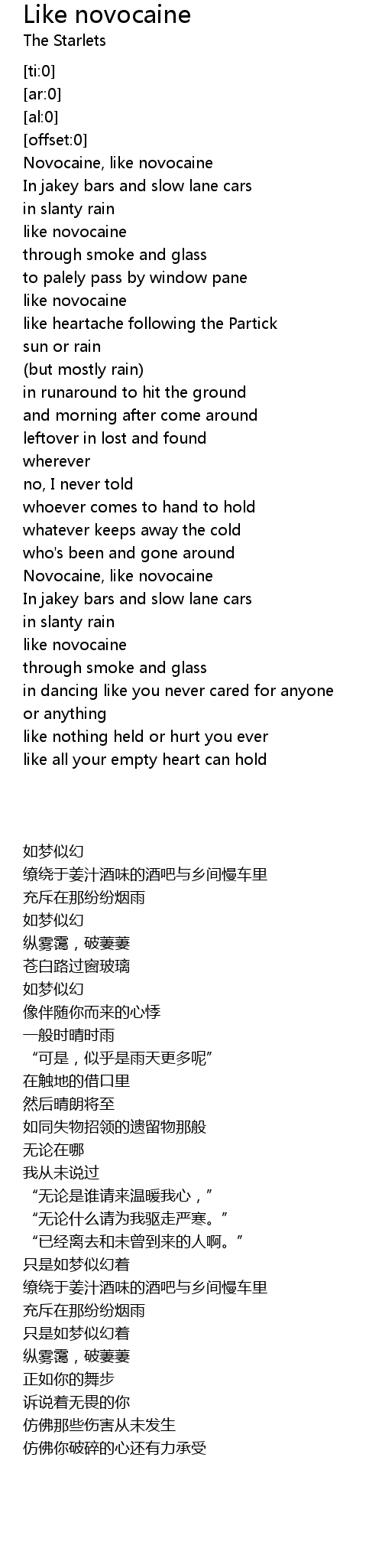 Novocaine, like novocaine |
