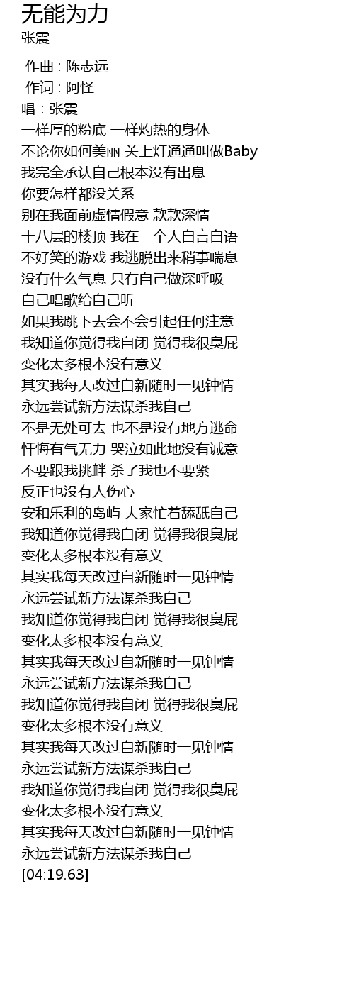 | [04:01.27] | 我知道你觉得我自闭 觉得我很臭屁 |