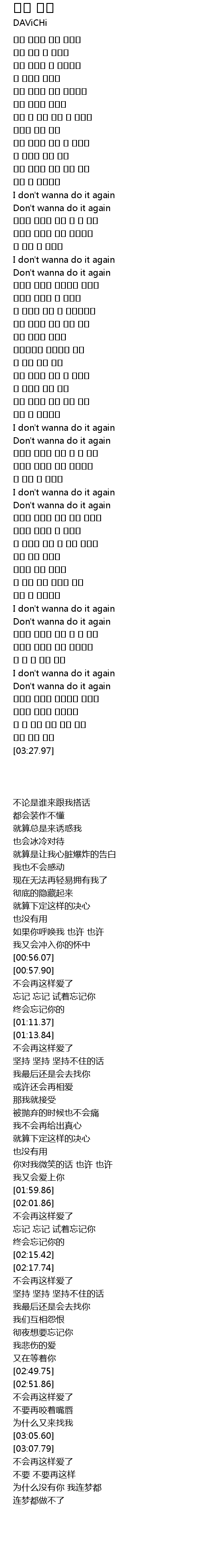 | [02:03.96] | 다시는 이렇게 사랑 안 할 거야 |