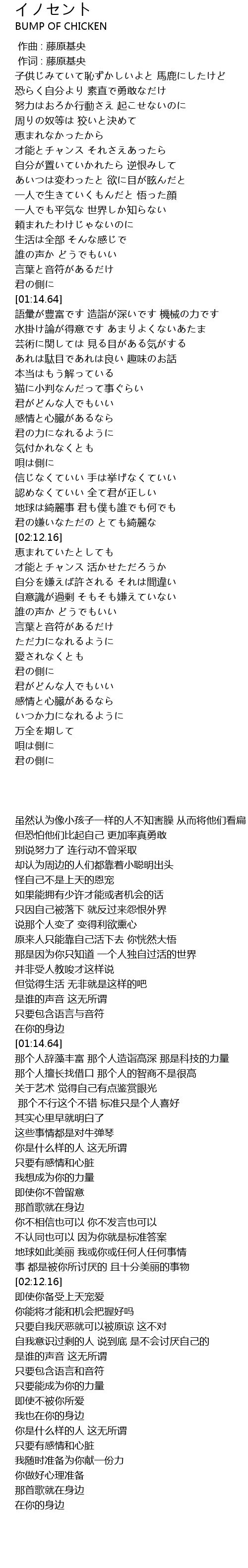 | [00:01.00] | 作词 : 藤原基央 |
