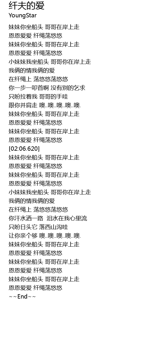 | [02:35.920] | 恩恩爱爱 纤绳荡悠悠 |