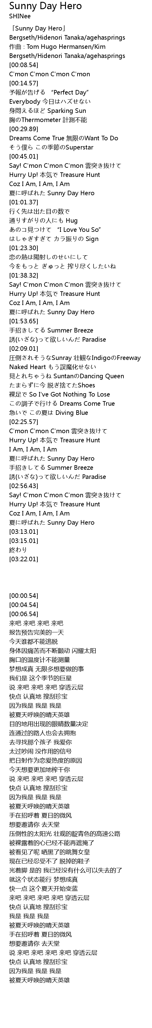 | [00:55.54] | 夏に呼ばれた Sunny Day Hero |