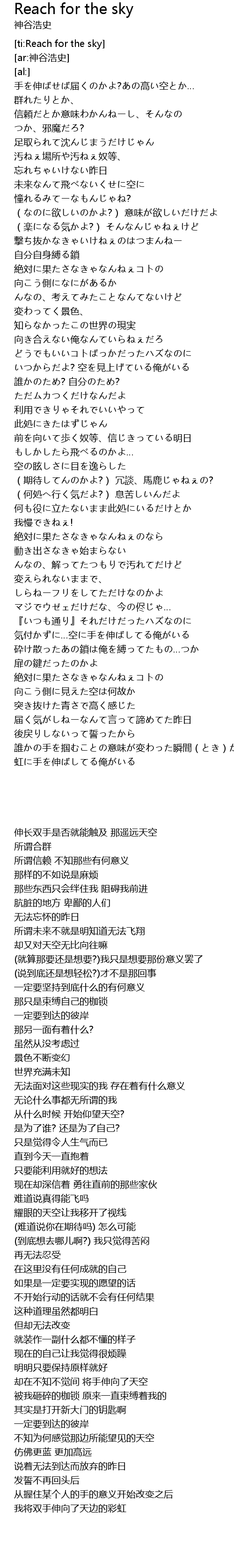 | [00:01.50] | 手を伸ばせば届くのかよ?あの高い空とか… |