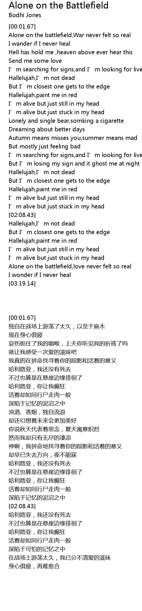 | [03:08.66] | Alone on the battlefield, love never felt so real |