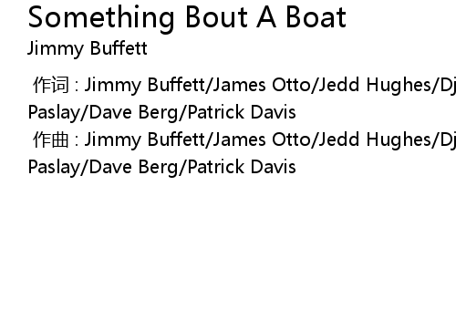 | [00:00.000] | 作词 : Jimmy Buffett/James Otto/Jedd Hughes/Django Walker/Eric Paslay/Dave Berg/Patrick Davis |
