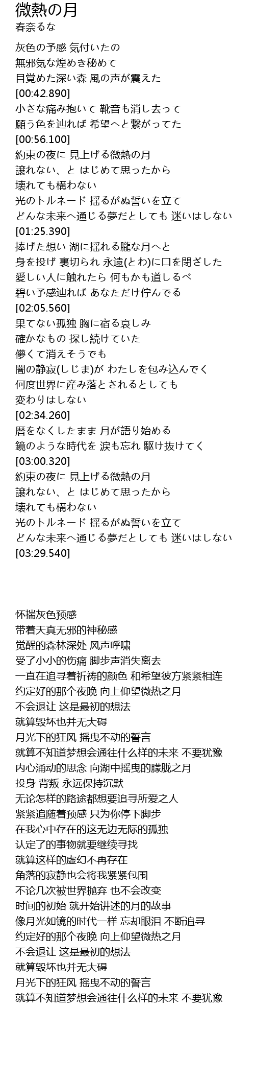 | [03:00.930] | 約束の夜に 見上げる微熱の月 |
