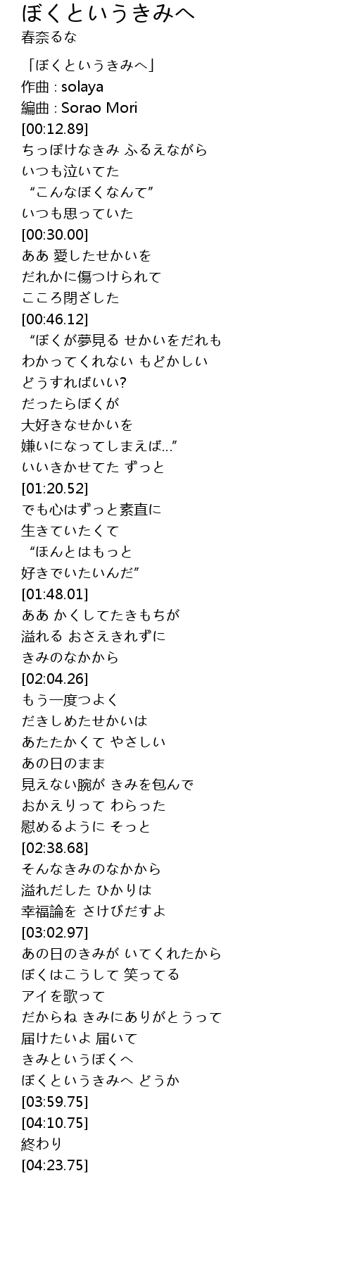 「ぼくというきみへ」 |