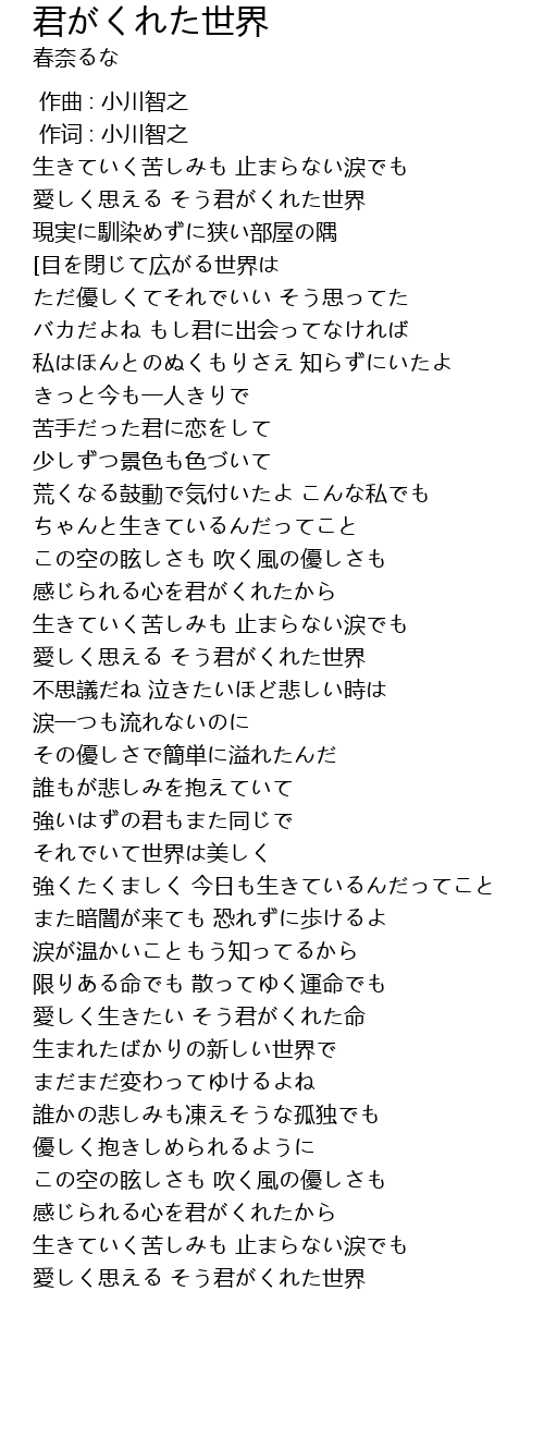 | [02:16.550] | 愛しく思える そう君がくれた世界 |