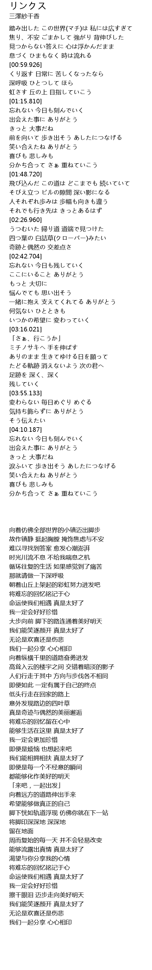 | [04:17.264] | 出会えた事に ありがとう |
