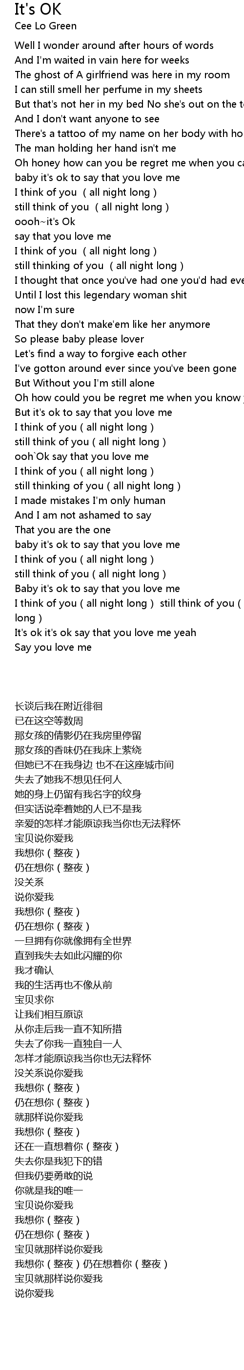 | [00:49.350] | baby it' s ok to say that you love me |