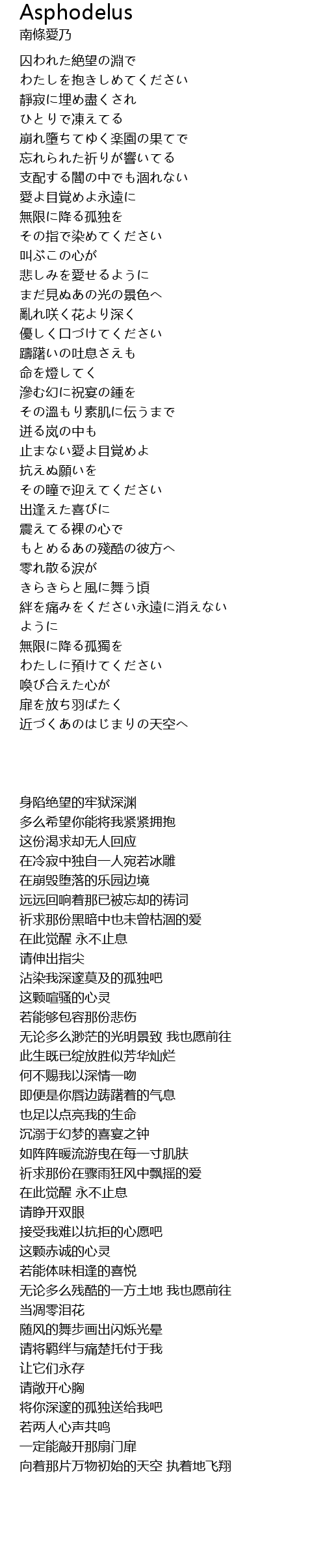| [00:50.170] | 崩れ墮ちてゆく楽園の果てで |