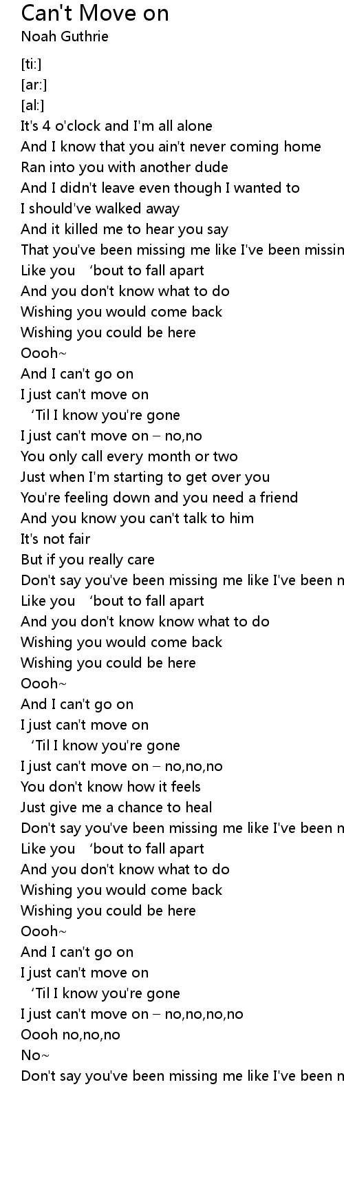 | [03:00.96] | I just can' t move on no, no, no, no |