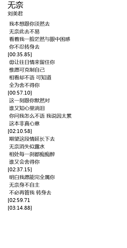 | Song | 无奈 |