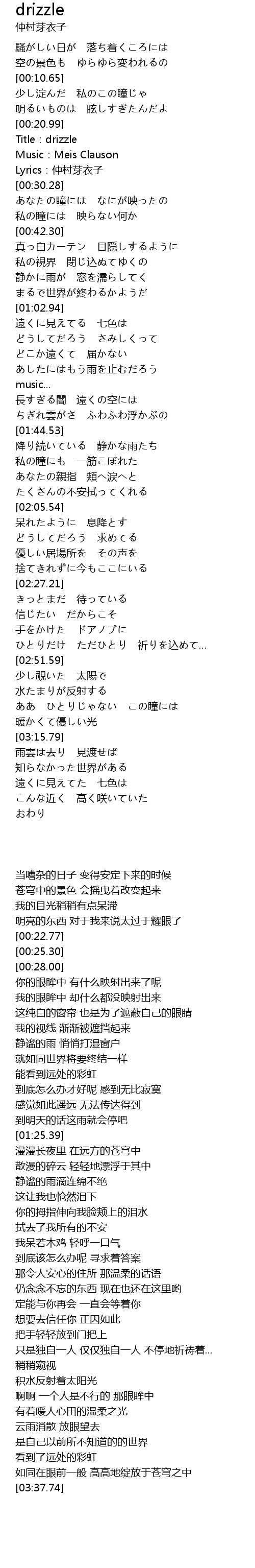 | [01:18.79] | あしたにはもう雨を止むだろう |