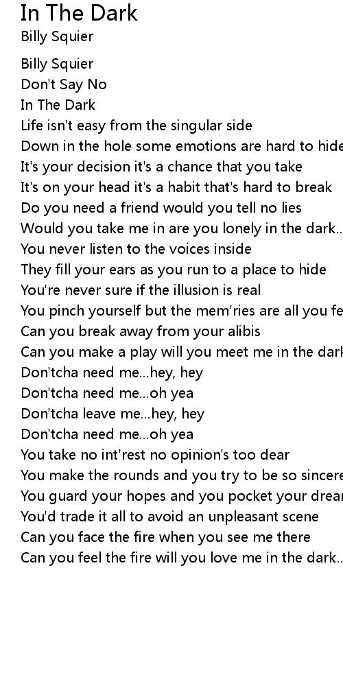 Can you feel the fire will you love me in the dark... |