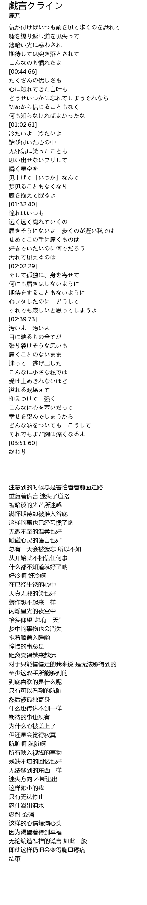 嘘を缲り返し道を见失って |