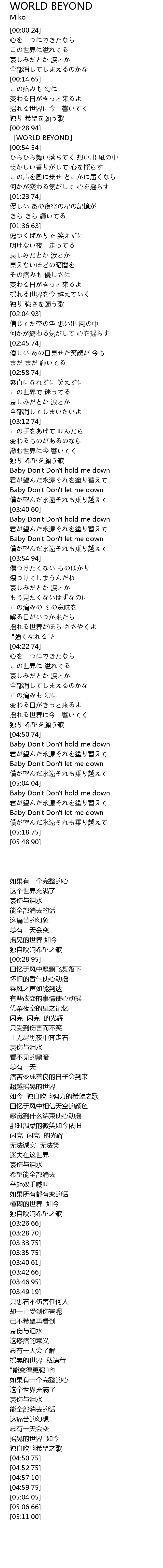| [00:28.95] | 「WORLD BEYOND」 |