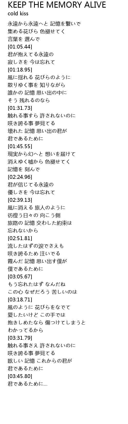 | [00:53.71] | 永遠から永遠へと 記憶を繋いで |
