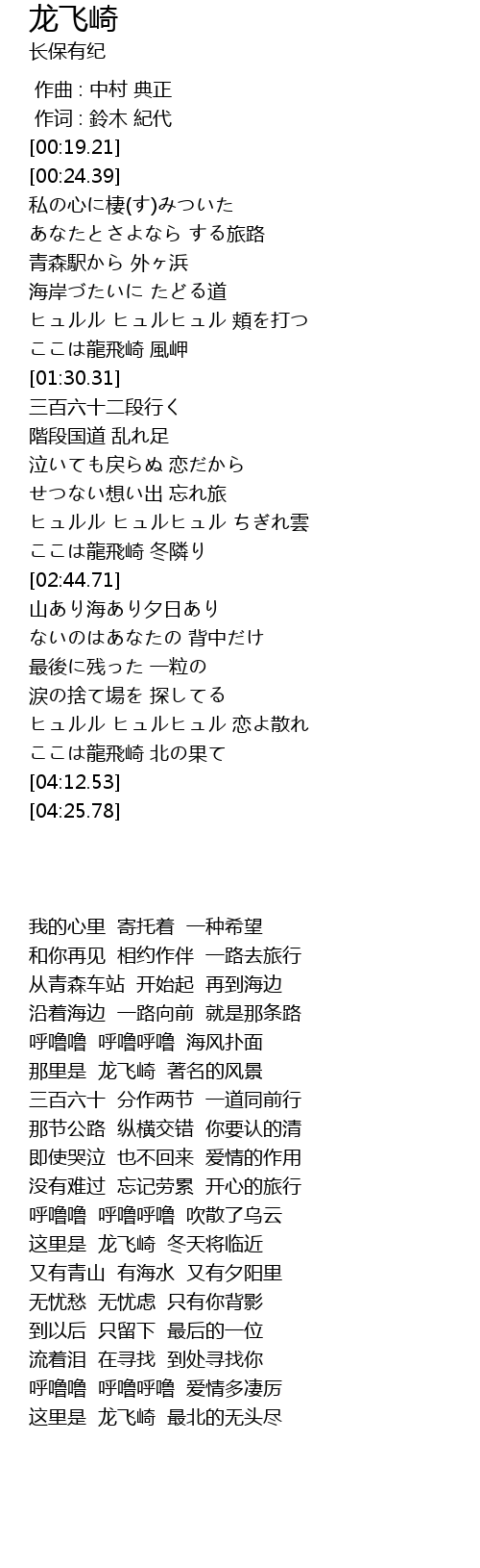 | [01:14.03] | ここは龍飛崎 風岬 |