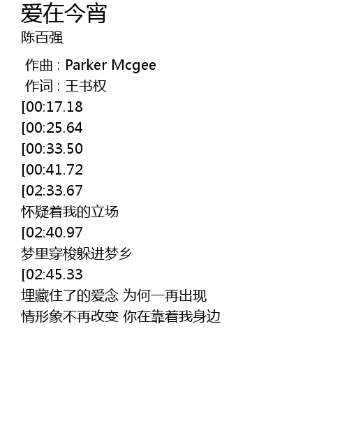 | [00:00.00] | zuo qu : Parker Mcgee |