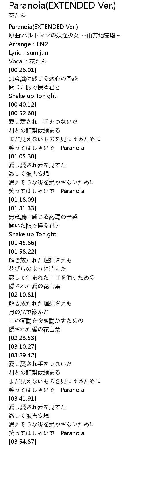 | [03:51.81] | 笑ってはしゃいで Paranoia |
