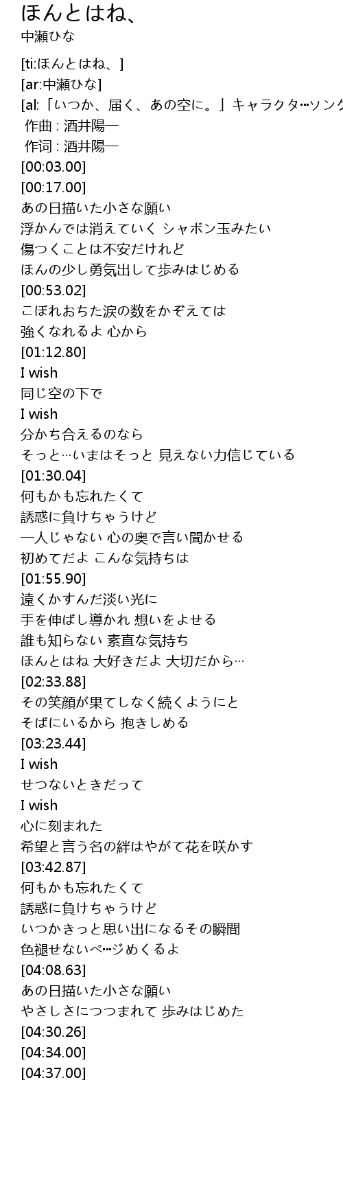 | [ti:ほんとはね、] | |