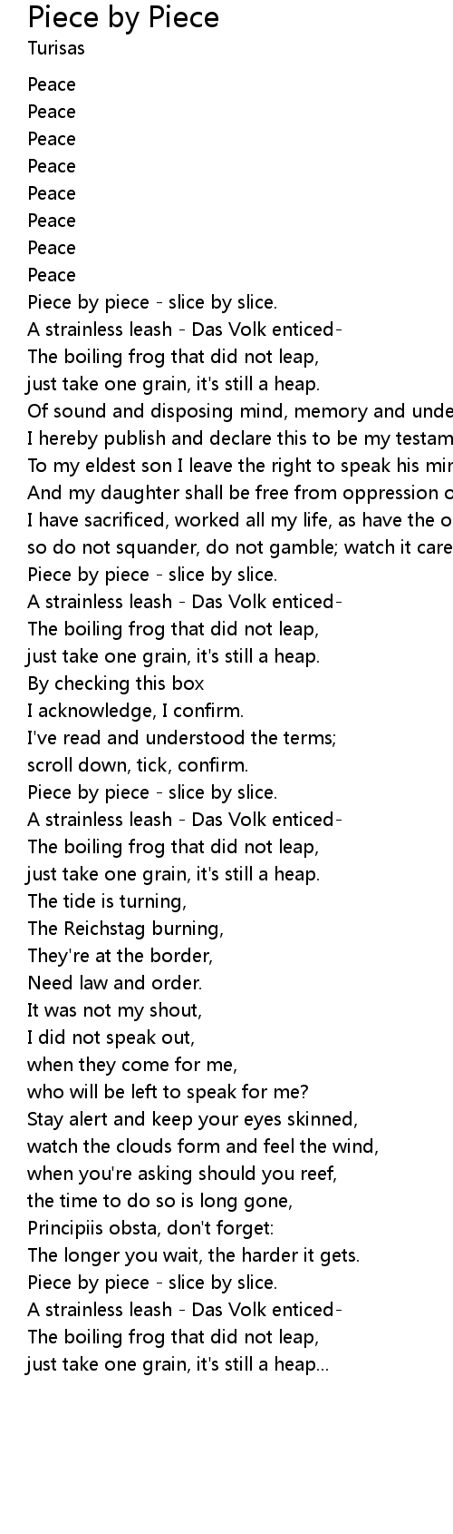 Piece by piece - slice by slice. |