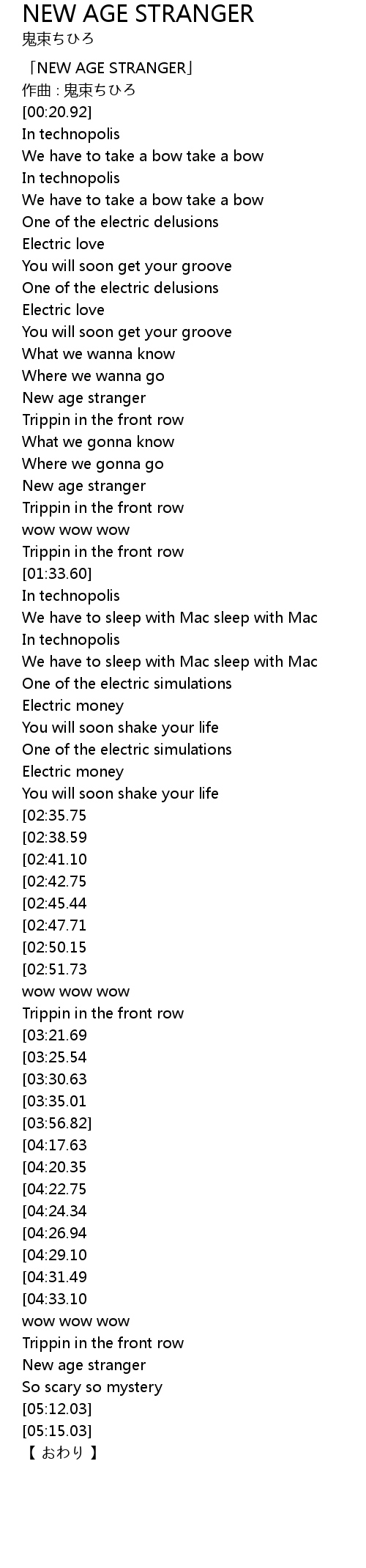 | [00:01.92] | 「NEW AGE STRANGER」 |