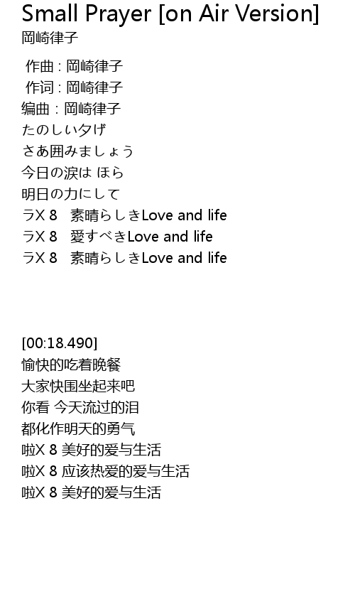 | [00:00.000] | 作曲 : 岡崎律子 |