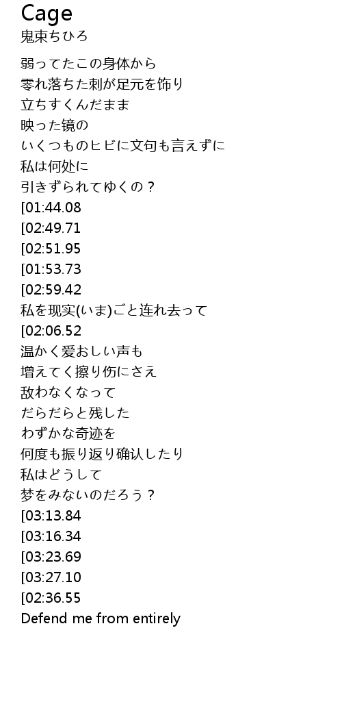 | [00:45.44][01:44.08][02:47.47][03:11.94] | 谁か言って |