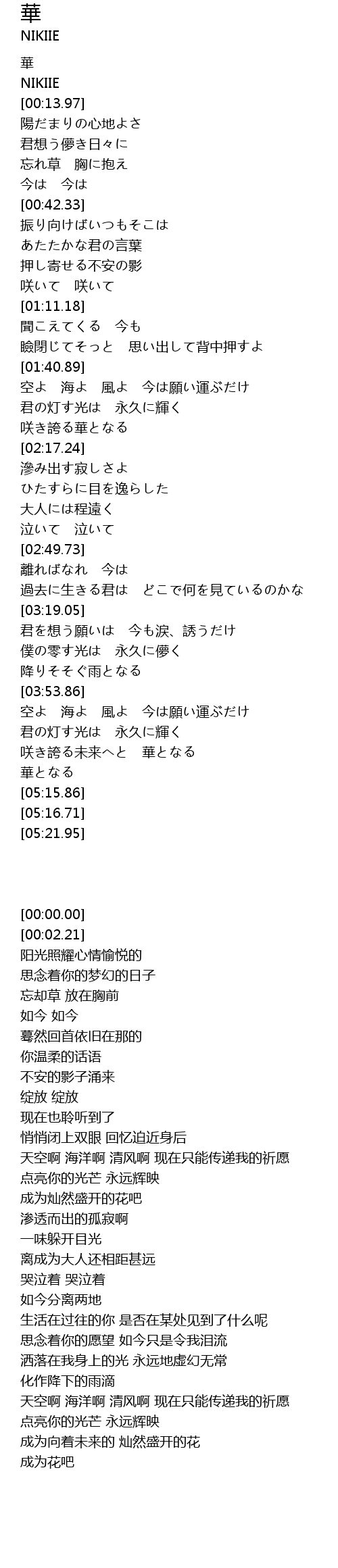 | [04:52.66] | 咲き誇る未来へと 華となる |