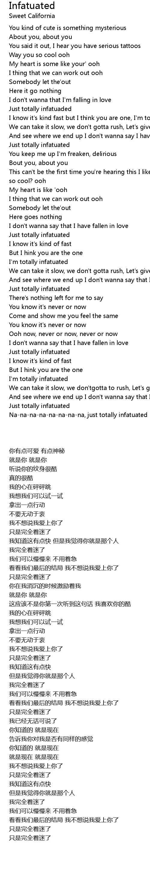 I know it's kind fast but I think you are one, I'm totally infatuated |