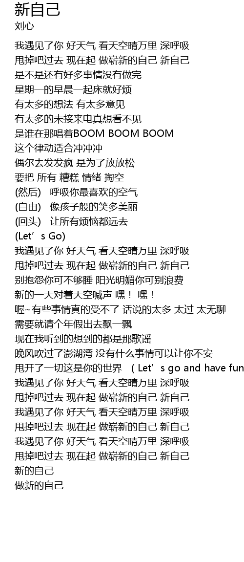 | [01:57.589] | shuǎi diào ba guò qù xiàn zài qǐ zuò zhǎn xīn de zì jǐ xīn zì jǐ |