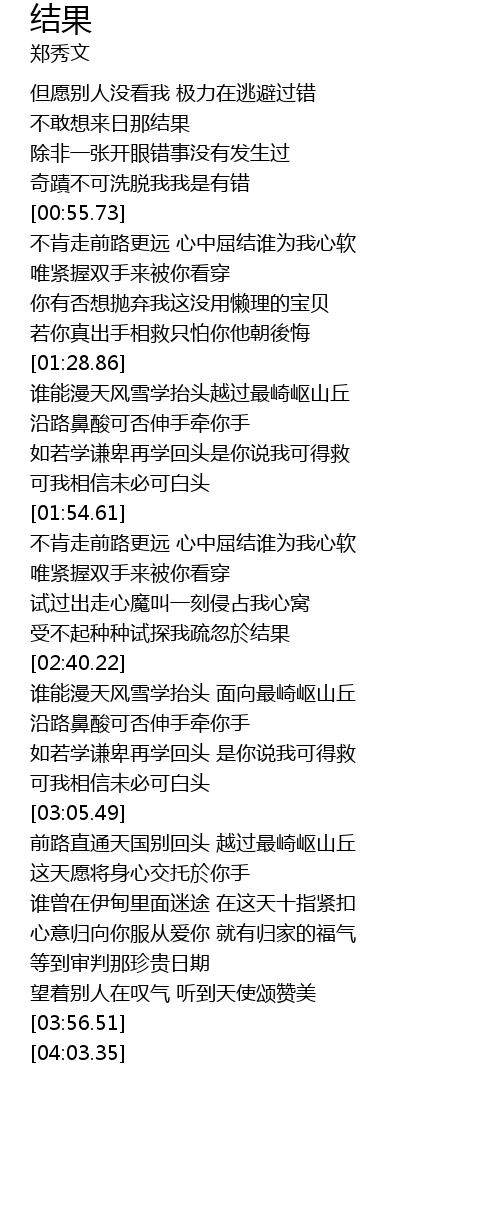| [02:33.97] | 受不起种种试探我疏忽於结果 |