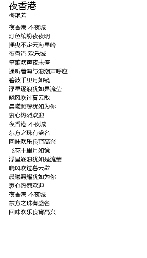| [00:24.02] | yè xiāng gǎng huān lè chéng |