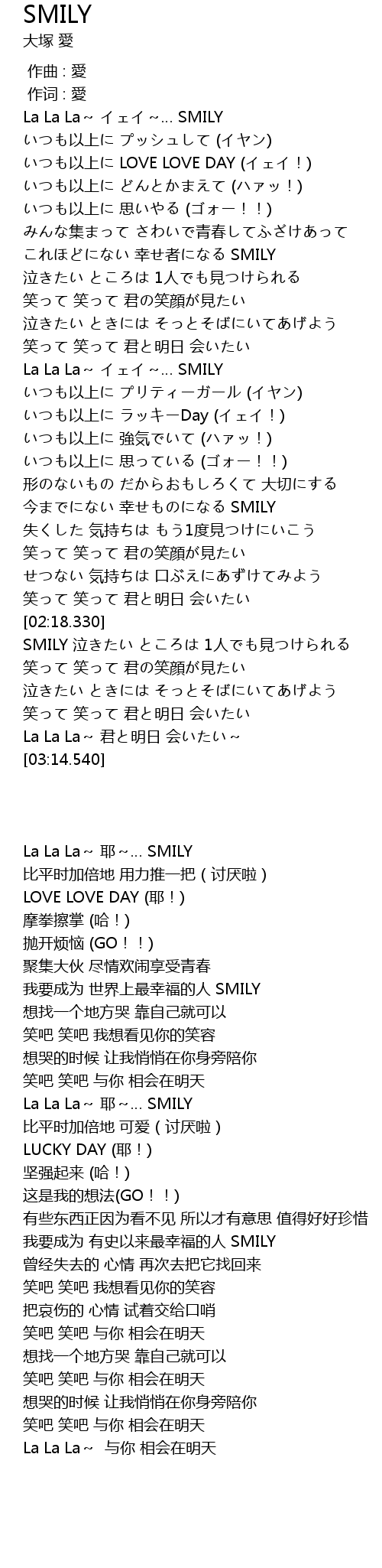| [01:13.020] | La La La SMILY |