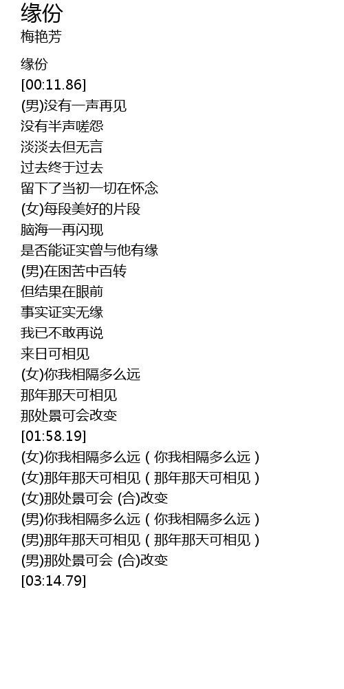 | [00:53.39] | 是否能证实曾与他有缘 |