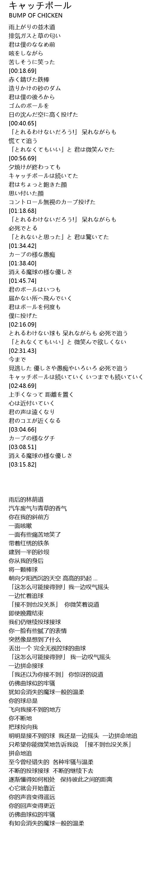 | [02:40.76] | キャッチボールは続いていく いつまでも続いていく |